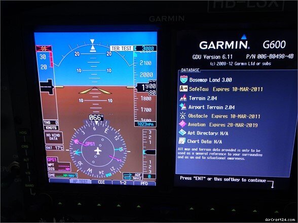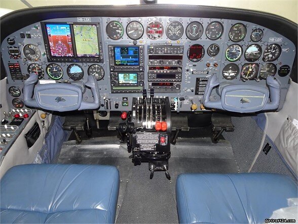 | Avionics | | Avionics and autopilot upgrade per EASA Mod. 0060029550-001 PS Engineering PMA8000C Audio Panel, Intercom, Marker Beacon Garmin GNS530W NAV-COM-GPS, interfaced with Radar System Garmin GNS430W NAV-COM-GPS Garmin G-600, EASA STC.A.S.037679 (Garmin GDU620) with TAWS and Synthetic Vision, Radar Display King KI206 Number Two NAV Indicator King KX165A NAV-COM 3, 8.33 kHz S-TEC 55X Autopilot with Computerl, Transducer, Roll/Pitch/Trim Servos, Turn and Bank, Yaw Damper, FAA STC SA8890SW-D, LBA Validated Shadin Digidata-L with Fuel Flow Option grandfathered FAA STC SA00729SE-D King KN63 DME, displayed on Garmin G600 King KR87 ADF displayed on Garmin G600 Garmin GTX330 XPDR S Number 1 Garmin GDC74A Encoder King KT73 XPDR S Number 2 ACK A30.4 Encoder Garmin GWX68 Weather Radar displayed on Garmin G600 King KRA10A Radar Altimeter Altitude Alerter integrated in the Garmin G600 L-3 Sky 497 TAS System displayed on Garmin G600 and GArmin GNS530W, connected to ACK A-30.4 Encoder Artex ELT ME406, PN 453-6603, 406 Mhz Intercom for all Occupants EDM760 Engine Analyzer Astro Tec Digital Clock/Timer Complete Co-Pilot Instrument Panel ASR EPU6A5 Emergency Power Supply Attitude Gyro, Attitude Indiator, Vertical Speed Indicator, both Airspeed Indicators, Fuel Quantity Indicator, Manifold Pressure Indicator repaired by Avionitec on 20.09.2013 Main Battery replaced on 20.09.2013 Both Attitude Indicators and Tachometers repaired by Avionitec on 30.03.2015 Radar Antenna GWX68 replaced on 02.11.2016 HSI replaced on 14.12.2018 |