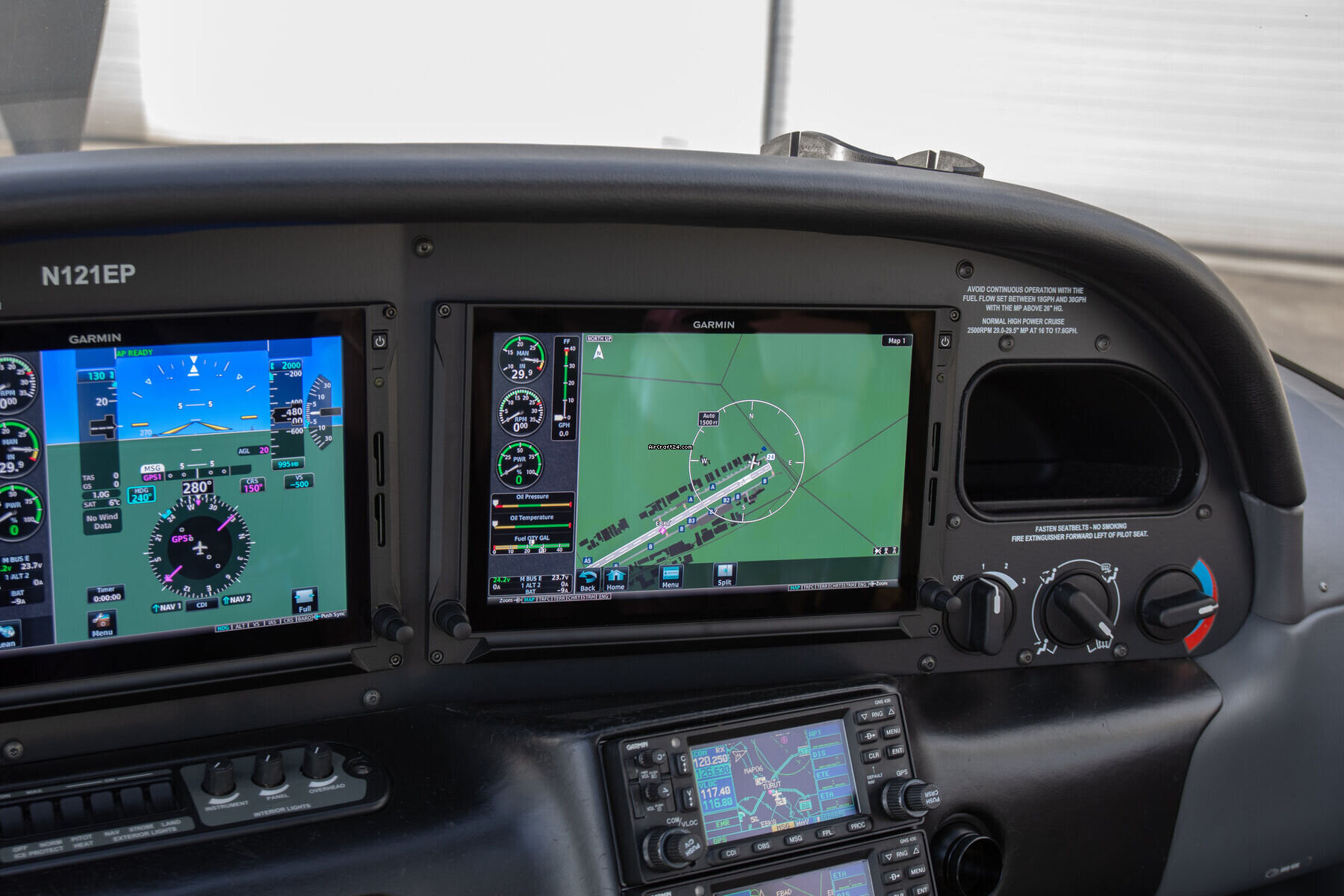 - COM/NAV/GPS: Dual Garmin GNS430W (WAAS) displaying Traffic and Stormscope.
