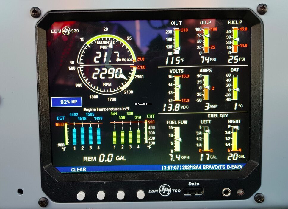 | Engine(s) | | Number of engines: | 1 | | Make/Model: | Lycoming AEIO – 360 - BiF | | Power: | 180 PS | | Prop Make/Model: | Hartzell Prop |